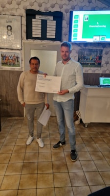 - Peter Karsten overhandigd namens de Rabobank ledenraad een cheque aan Frits Bakker. Daarmee wordt de opbrengst van de RaboClubsupport bekend gemaakt.