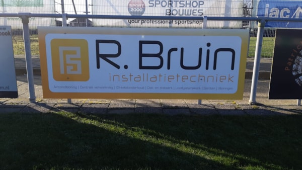 Langs het A-veld staat een nieuw sponsorbord van R. Bruin Installatietechniek uit Tuitjenhorn. Namens het bestuur bedankt en van harte welkom bij onze club!